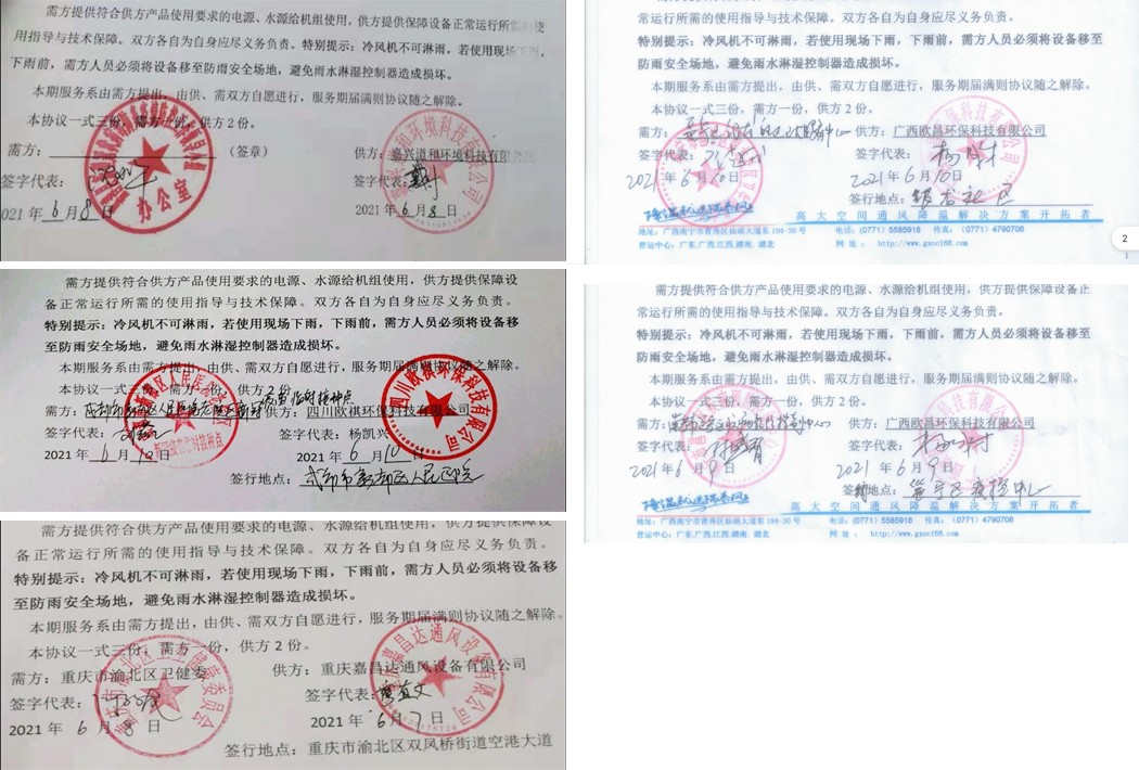 另,兩日來繼續(xù)簽下服務項目的瑞泰風愛心代表團隊有:四川歐祺環(huán)??萍加邢薰?、廣西歐昌環(huán)??萍加邢薰?、湖北瑞兆偉業(yè)通風降溫科技有限公司、嘉興道和環(huán)境科技有限公司,其中歐祺、歐昌再次收獲多項服務機會。再次熱烈祝賀重慶嘉昌達通風設備有限公司,祝賀以上各家瑞泰風愛心團隊!