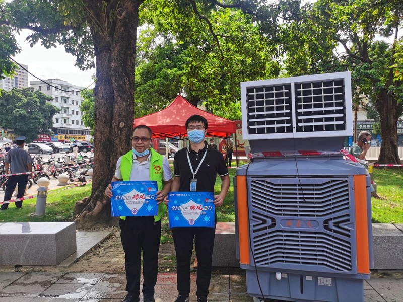 同時,今日在廣東省外,湖北黃岡麻城市,廣西南寧,四川成都,瑞泰風(fēng)當(dāng)?shù)貝坌膱F(tuán)隊同期送達(dá)了瑞泰風(fēng)移動冷風(fēng)機(jī),開始為當(dāng)?shù)氐男鹿谝呙缃臃N送清涼,提供消暑服務(wù)。